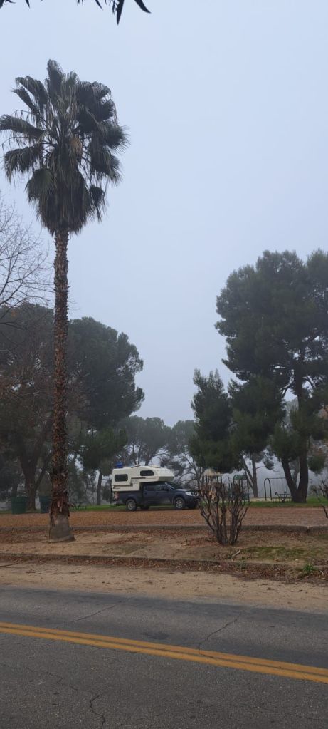From Sacramento we continued down the Central Valley. The entire time we were in the Valley we were driving through “Tule Fog” that is common to the area. Luckily our visibility was only an issue for a small time. But it made the time spent relatively cold. *note the Kern Campground photo with the dense fog…this was the coldest stay we encountered(7-8 degrees Celsius)