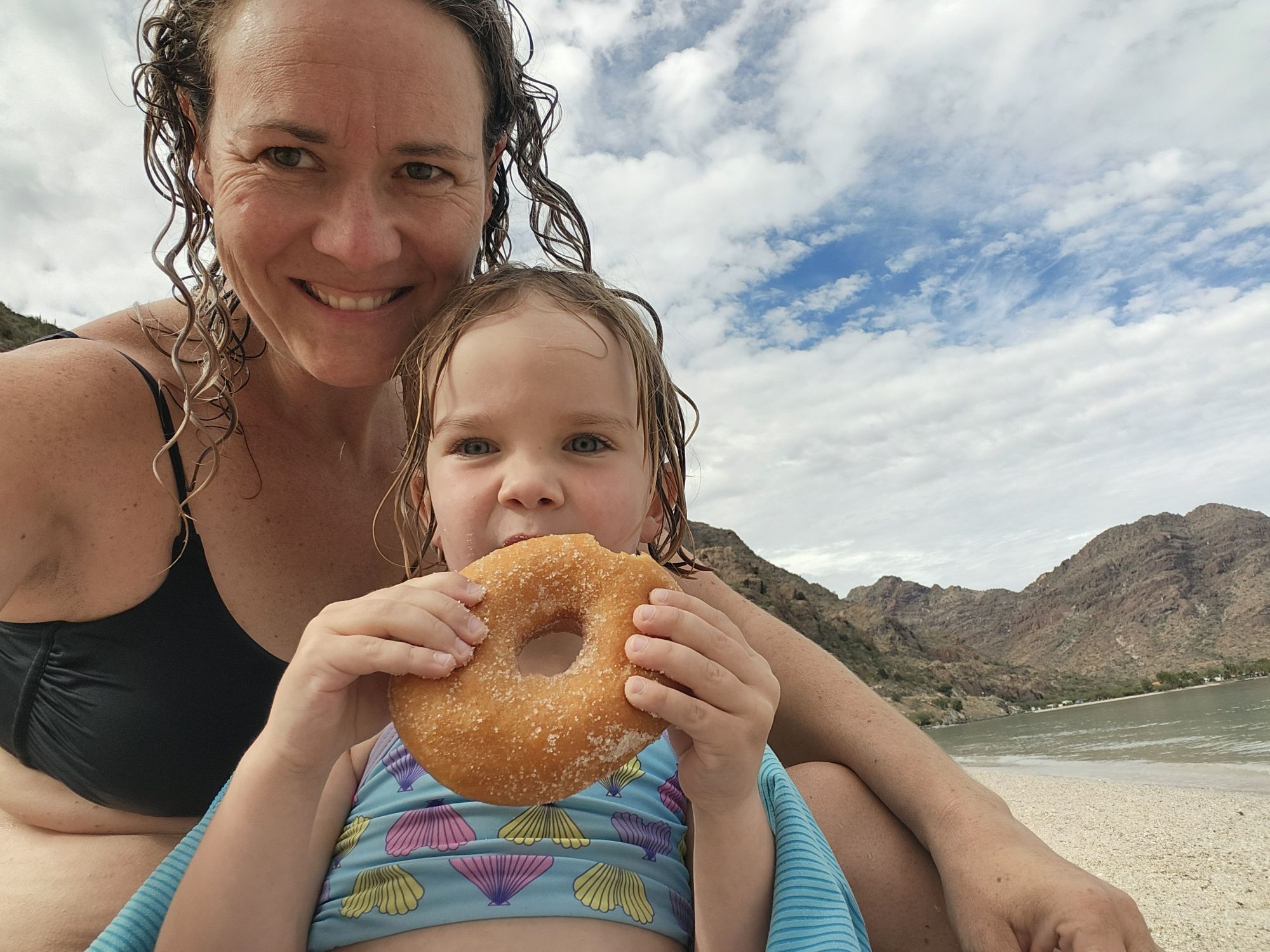 We have arrived! Of course we have enjoyed all the trip so far…but Paul and I sitting in the water with Olive playing nearby watching the waves and the pelicans. We couldn’t help turn and grin as though we made it!
