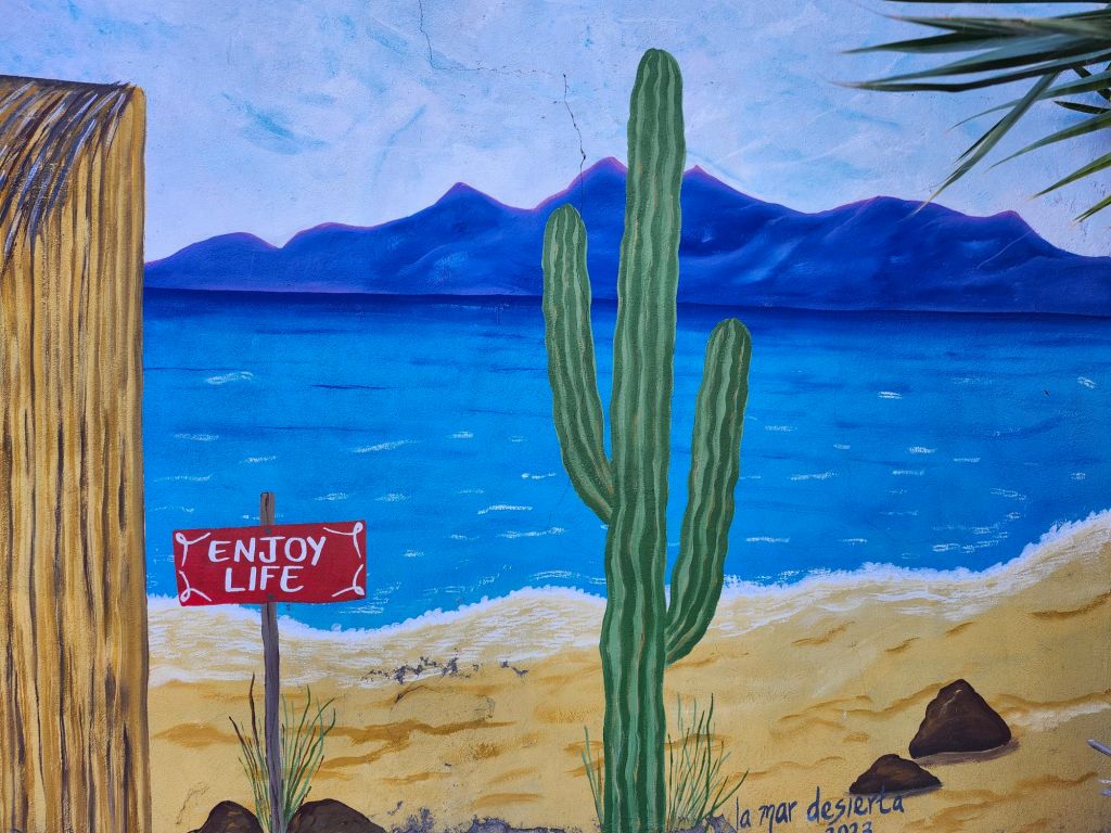 We enjoyed our next two days wandering the streets and stocking back up to head back out onto the beaches of Baja. Loreto has an up and coming bohemian tourist vibe. The beach front has many clean looking hotels and I’m sure delicious places to eat. What is missing is the large resorts. Further back from the Malecon are quaint and artsy vacation rentals that are well manicured.