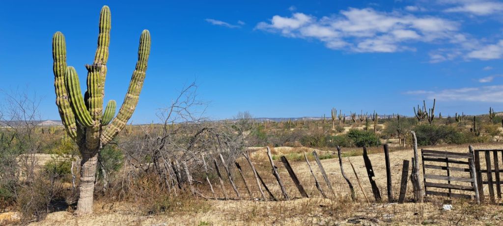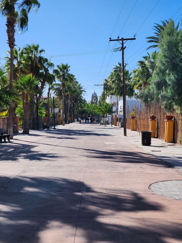 The distance between Loreto and La Paz is around 4 hours and farther than we care to drive in a day. Quidad Constitucion is more in land but a good half way point. Winding and climbing in elevation over the mountain range we drop into the agricultural space between coasts. This small town has again a very different feeling than the coastal centers.
