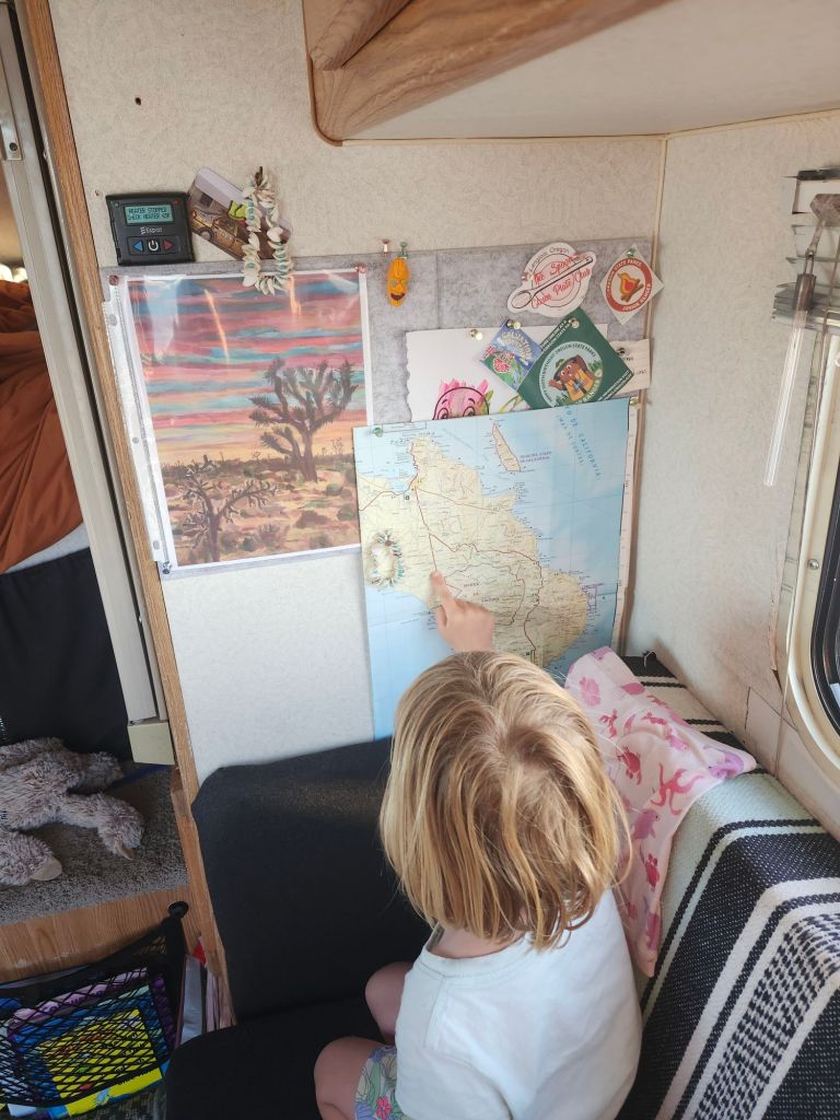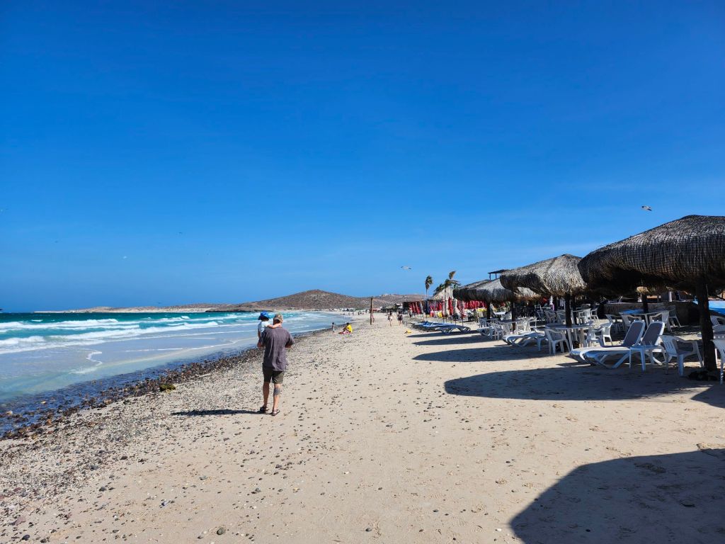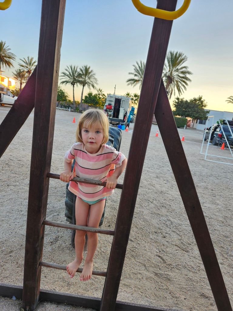 We park up at a campground just off the Malecon for one night at $500 pesos(our most expensive yet). But we want to experience the touristy area of La Paz for one day. Up until now we actually haven’t eaten out that much. Prices are comparable to Canada, its not likely to leave a restaurant without paying around $90-$100 for a few drinks and a meal each. We enjoy some delicious shrimp tacos and Paul has the fish tacos. We spend the rest of the afternoon walking the Malecon, playing in a park and walking through the streets. Well….I expected for it to happen. Both Olive and I got violently sick that night…likely the shrimp as Paul didn’t have any. Thank goodness we had a flush toilet very close by and no one else in the campground. It was a whole new experience of managing in our tight quarters. It was almost comically violent food poisoning. We awoke the next day feeling pretty drained from all the evacuating the day before.