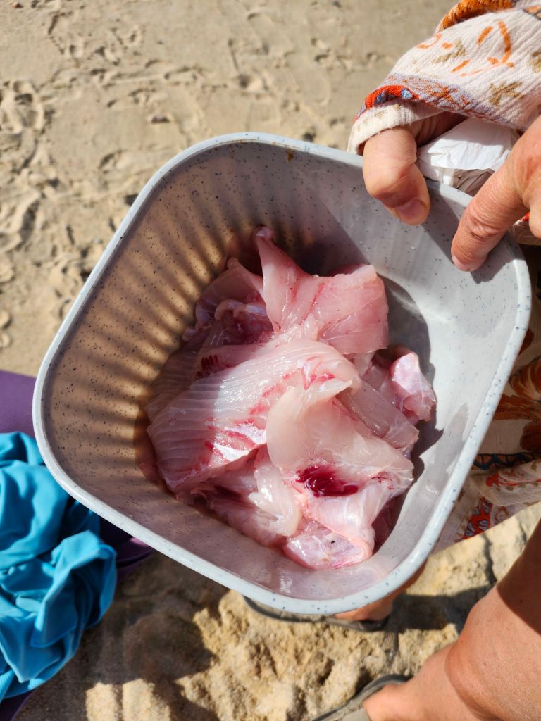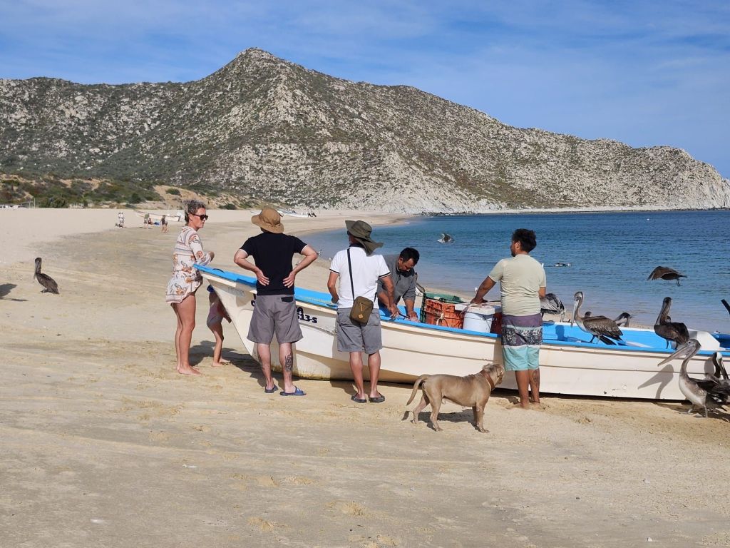 We were lucky to catch some locals coming in from a day of fishing. $150 pesos for a kilogram of Trigger fish. Super meaty and delicious.