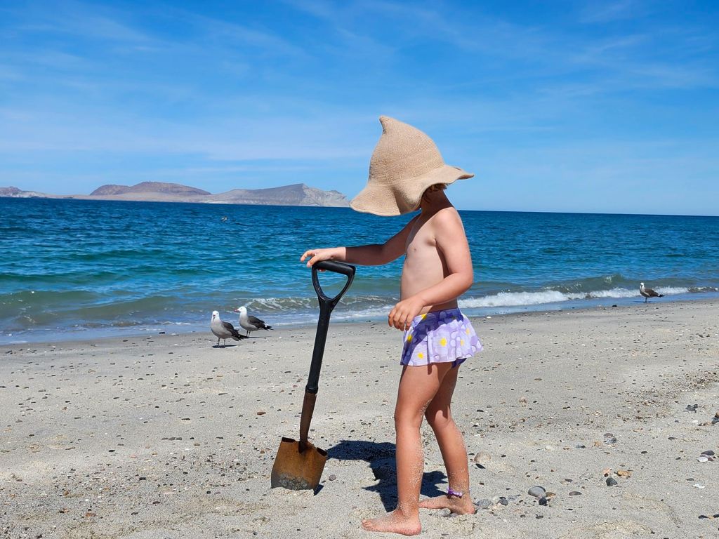 Baja Sur is where the magic is. Most people cruise through the North. At this point Paul is feeling better, Olive is fine but my digestion is tender. We pull into La Poma on a Saturday and this paid beach camping is full of locals. We soon find out it is Benito Juarez day (a past Mexican president and first Indigenous president) many locals are spending their weekend with family enjoying the beach. We rest, swim and explore the beach for 4 days.
